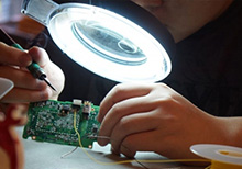 Инженер нашего сервис центра исполняет ремонт: заменяет поломанную часть исправной оригинальной частью